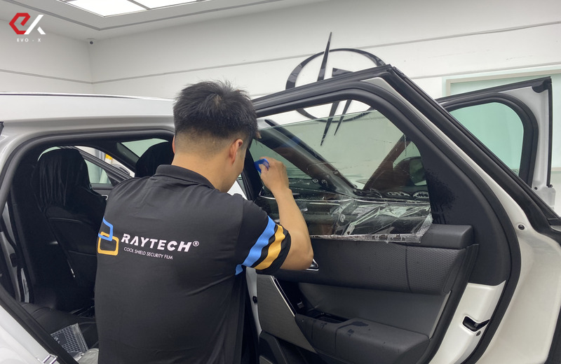 Dán phim lên kính xe để giảm nhiệt và hạn chế tia UV từ ánh nắng mặt trời. |