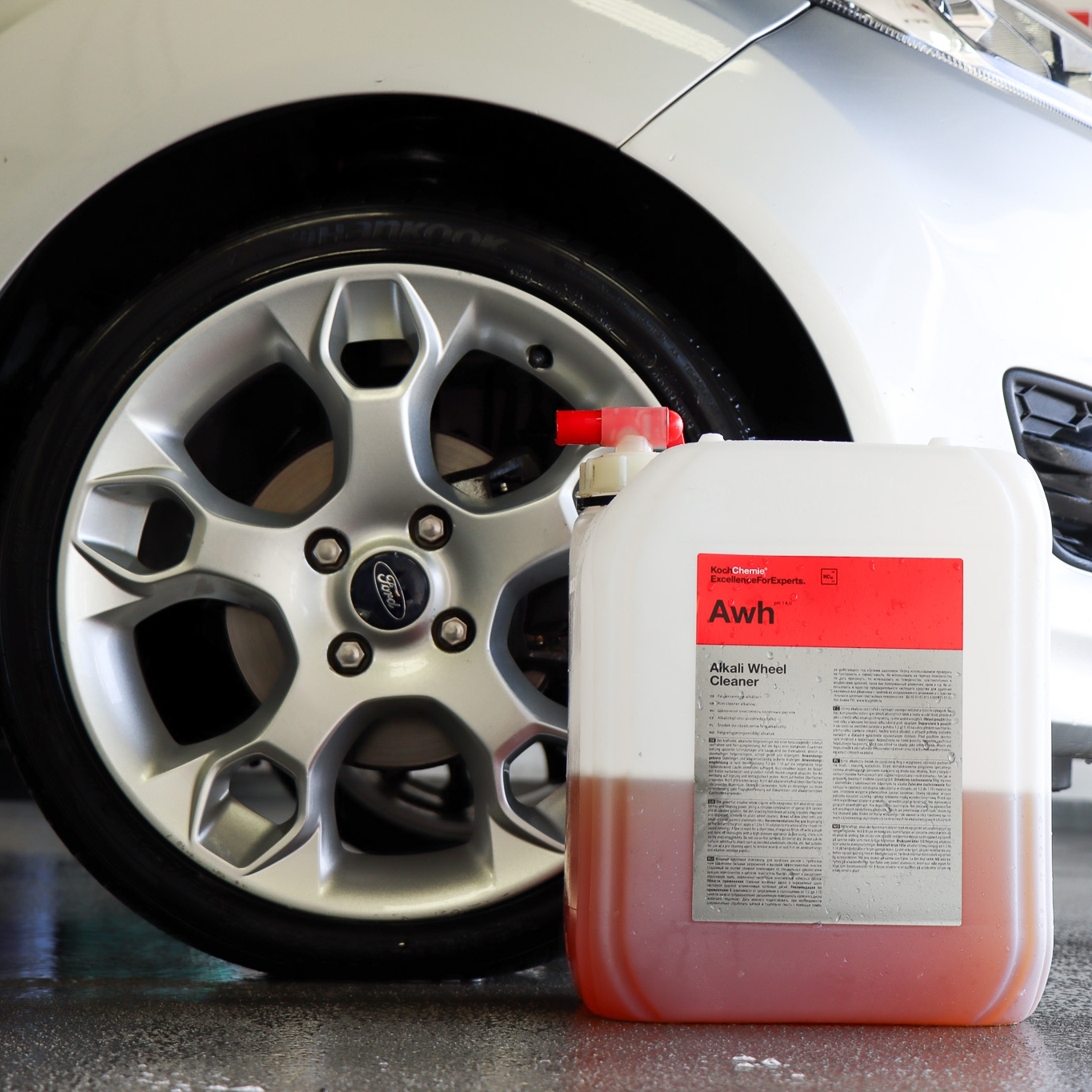 Dung dịch làm sạch bánh xe có tính kiềm mạnh với khả năng hút bụi bẩn và khả năng làm sạch các vết bẩn trên bề mặt lazang. Với sự kết hợp giữa các chất làm sạch và dung dịch kiềm, Alkali Wheel Cleaner Koch Chemie có thể loại bỏ nhanh chóng các vết bẩn do mài mòn phanh xe, hiệu quả không thua kém các chất tẩy rửa có tính axit. Các khe kẽ trong lazang cũng được làm sạch hoàn toàn chỉ sau một lần sử dụng. Dung dịch này không tạo ra quá nhiều bọt giúp làm sạch bánh xe một cách nhanh chóng và triệt để mà không gây kích ứng cho da.